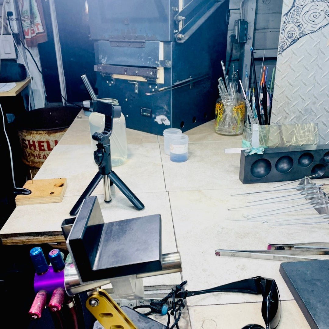 Did you know you can rent a fully equipped glassblowing workstation at my Langford studio? Each station includes a torch, oxygen, tools, and kiln - everything you need to create with confidence in a relaxed, inspiring environment just outside of Victoria, BC. Conveniently located on the 95 bus route.